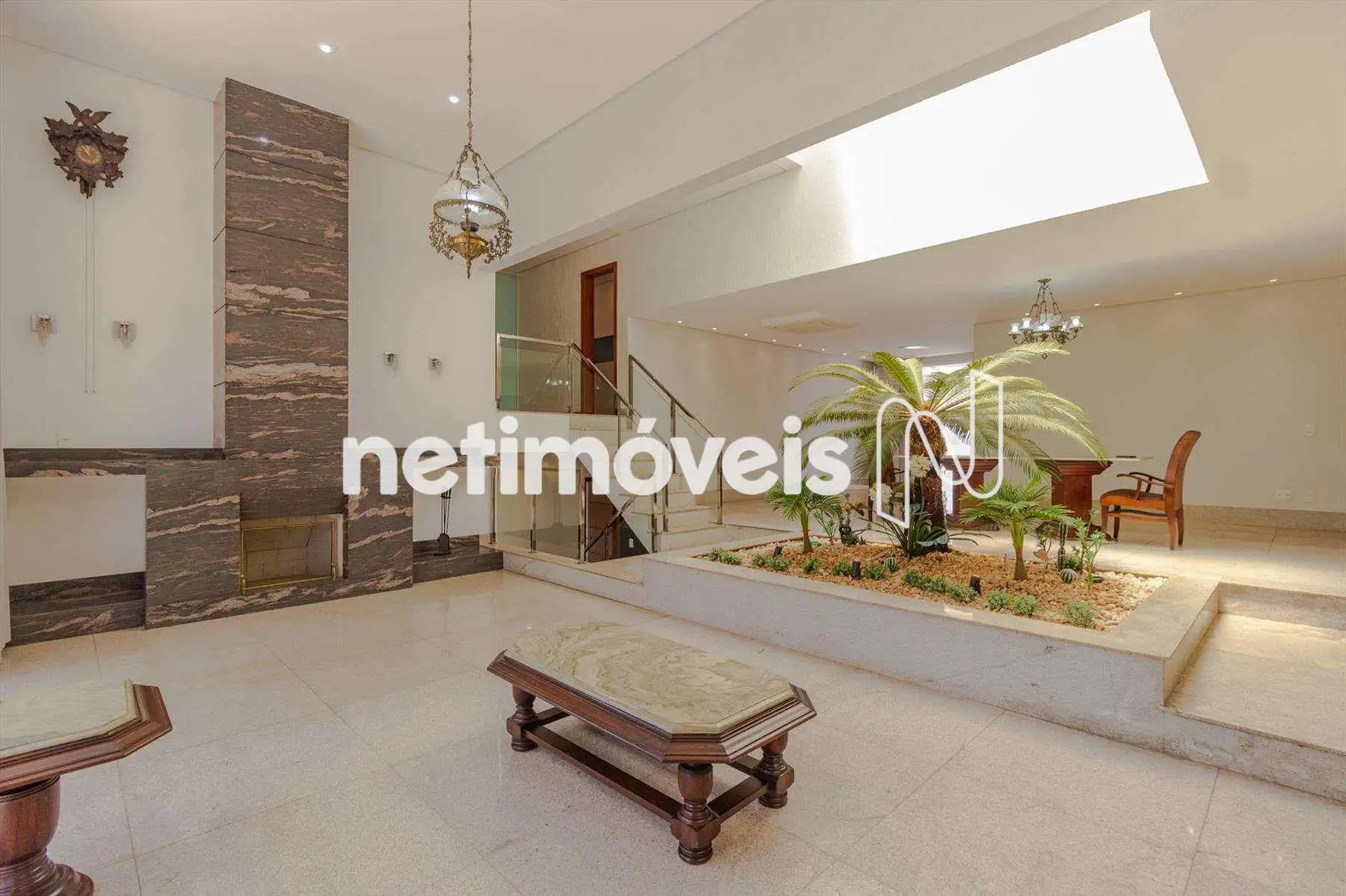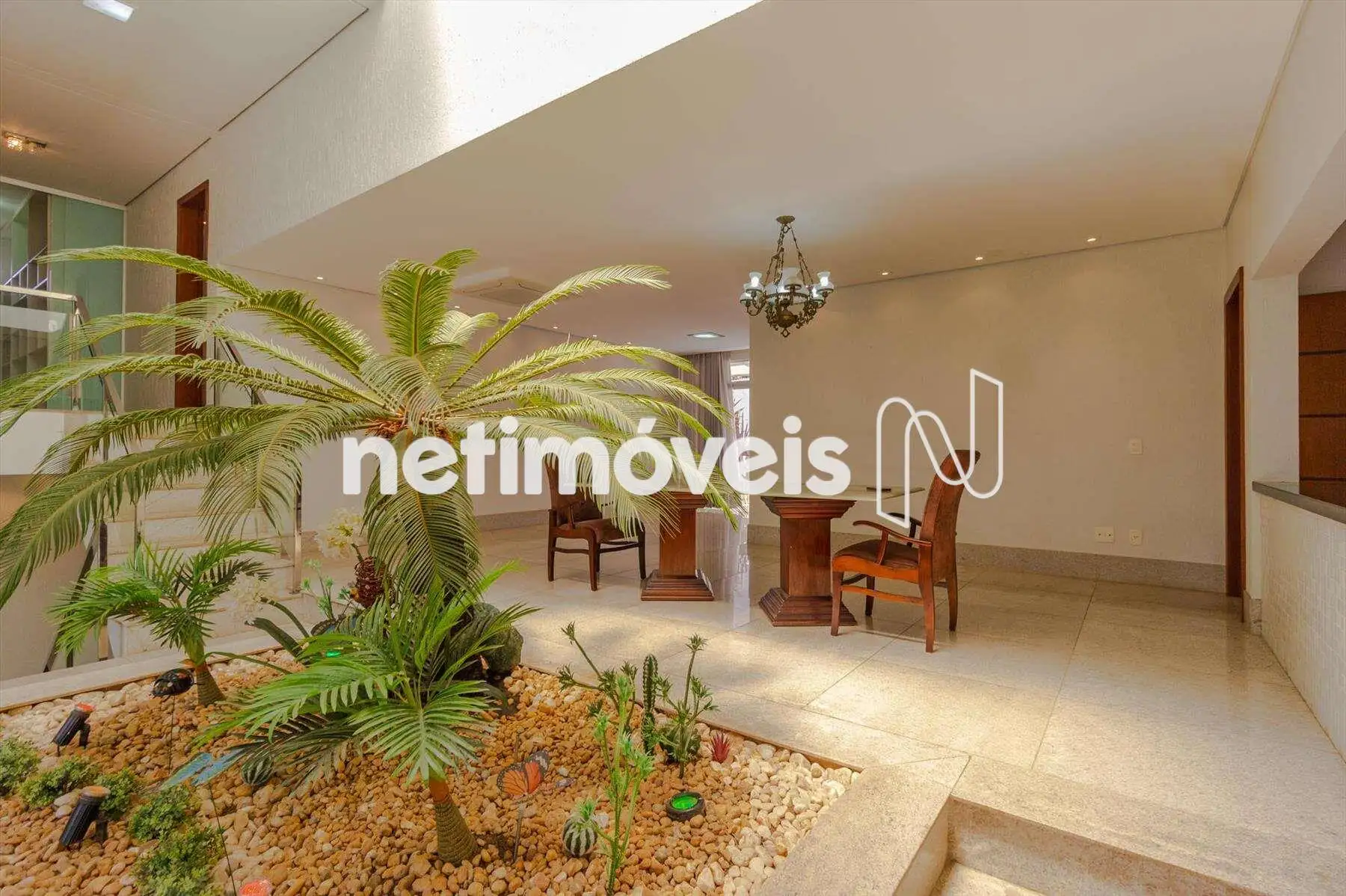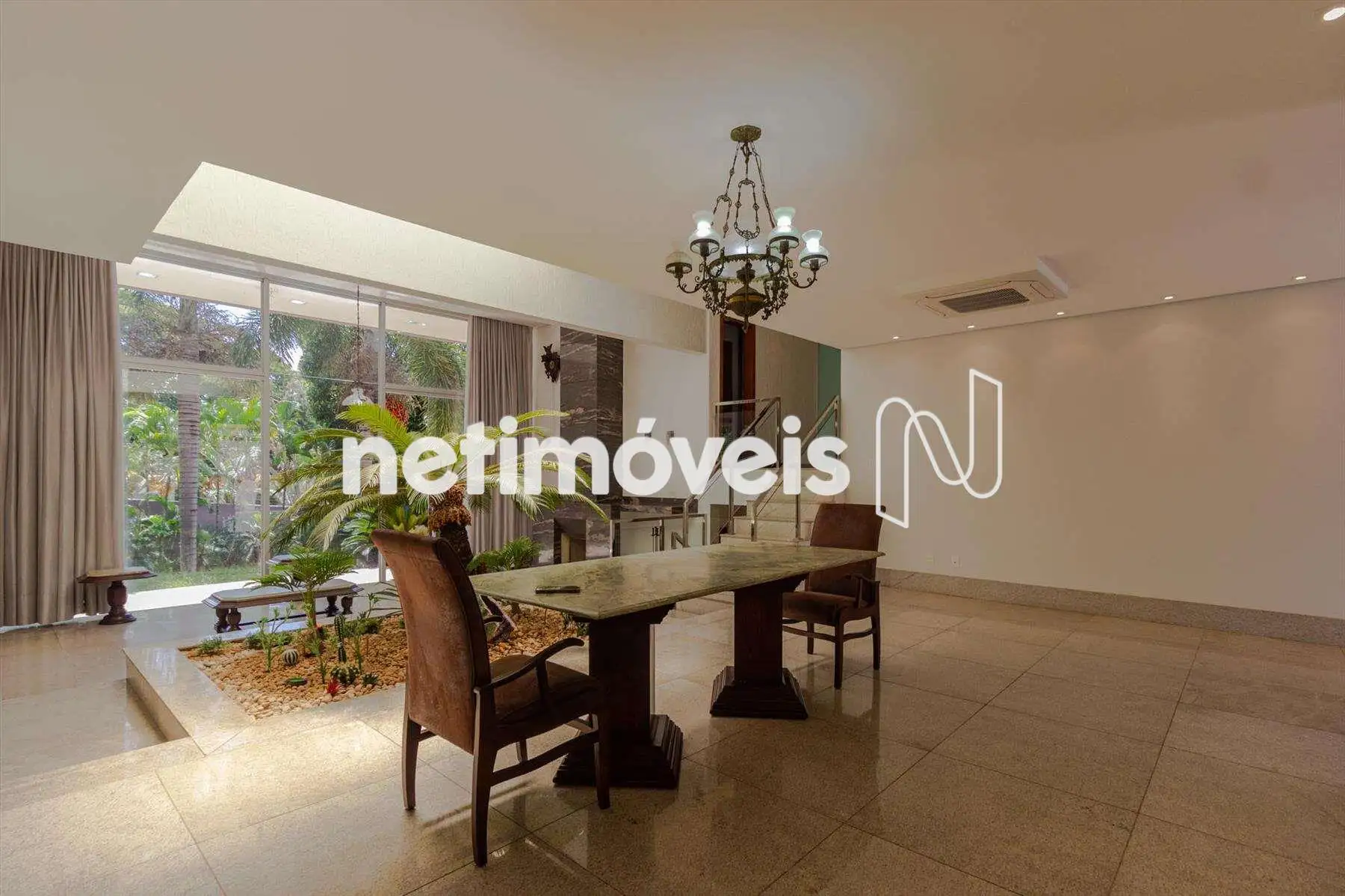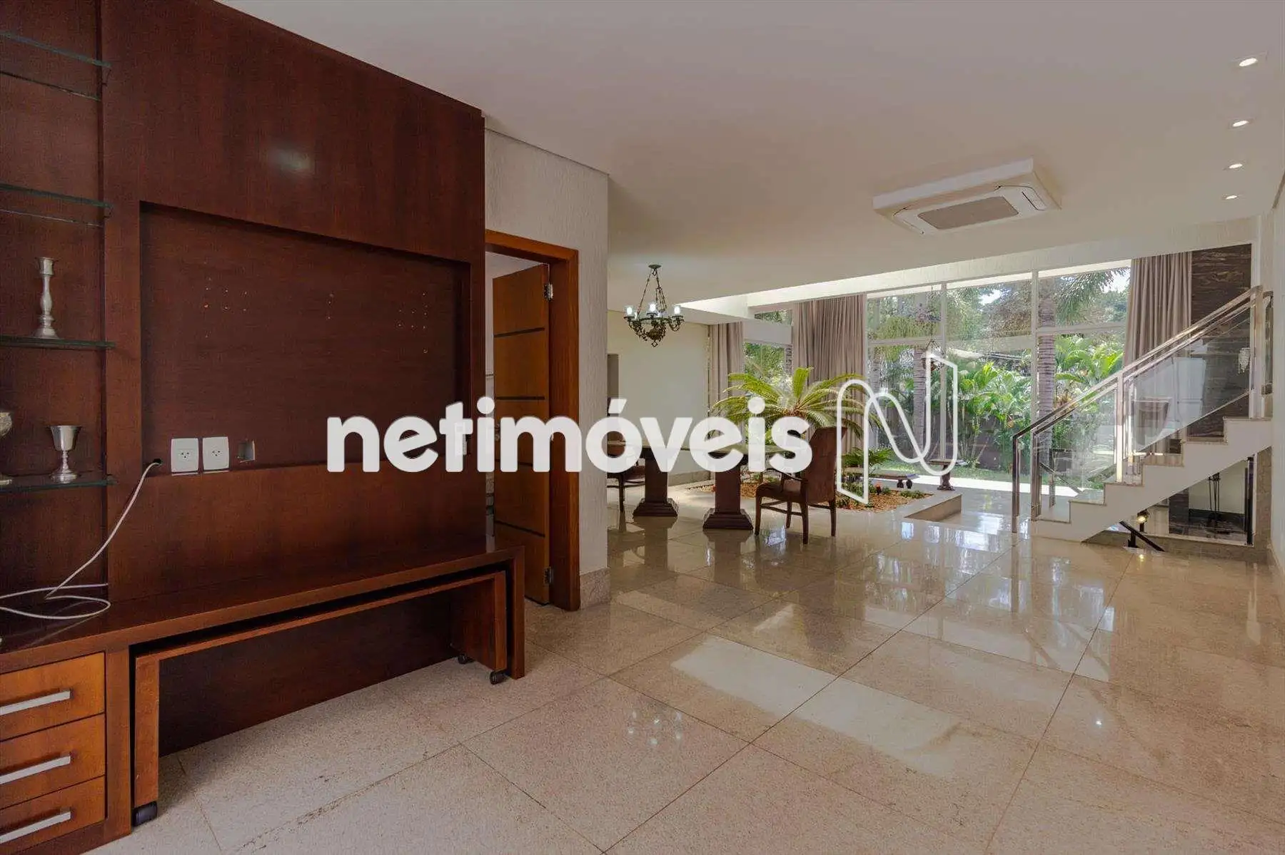 Área construída 607 m², acabamento de alto padrão, ar condicionado na sala e nos quartos.