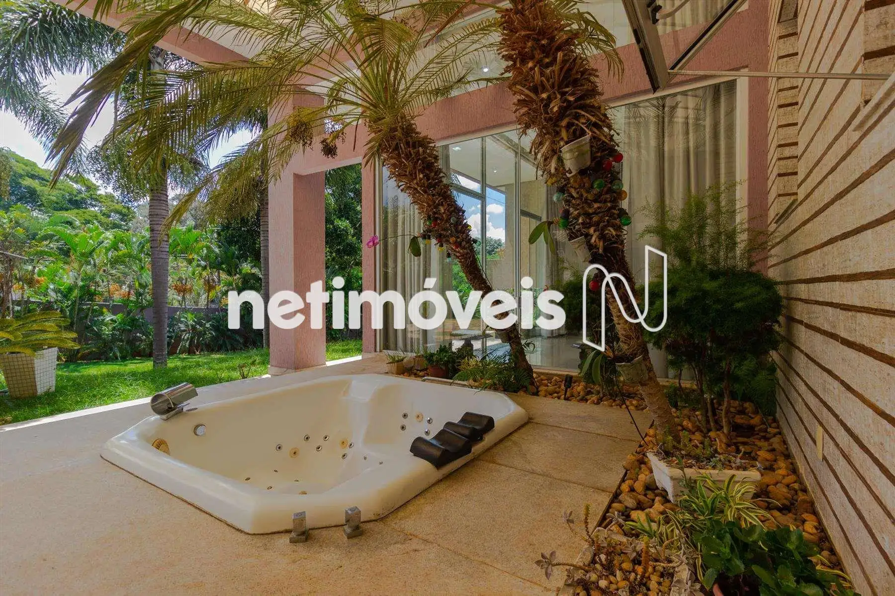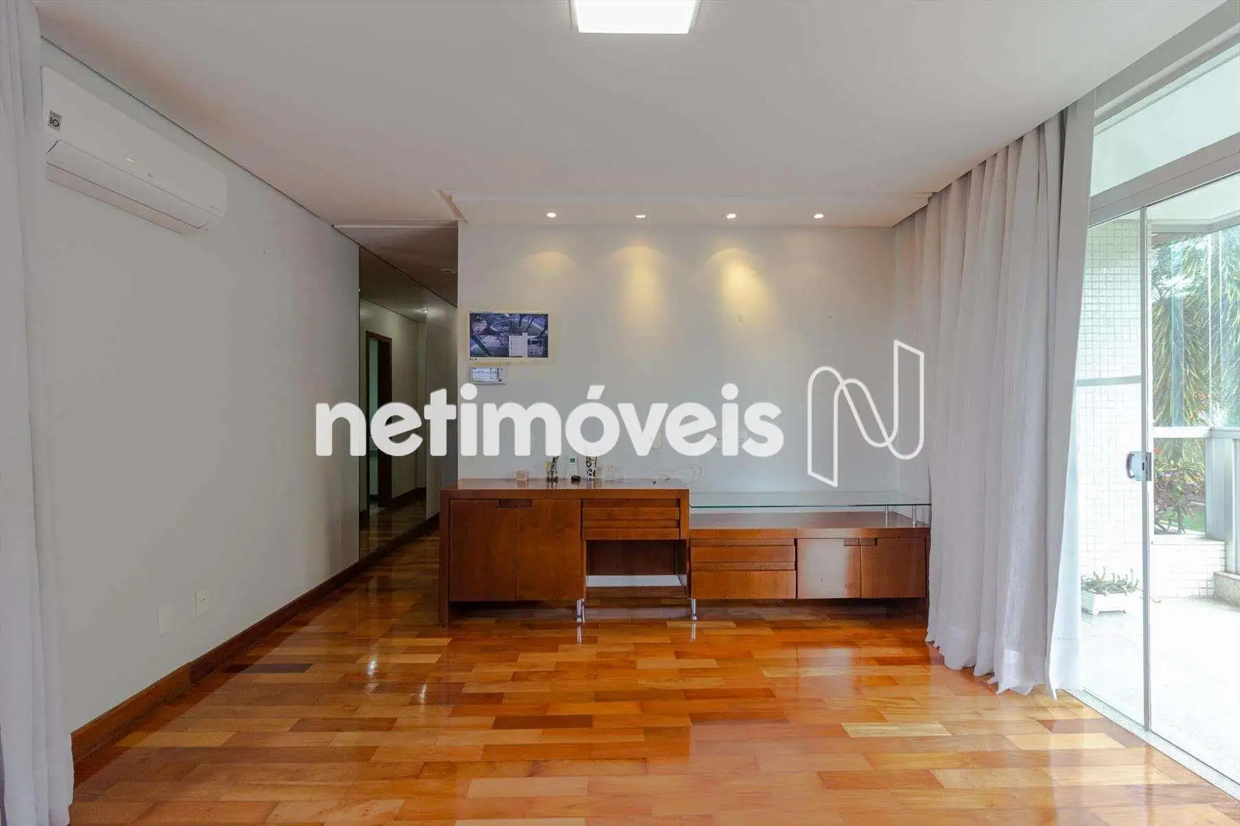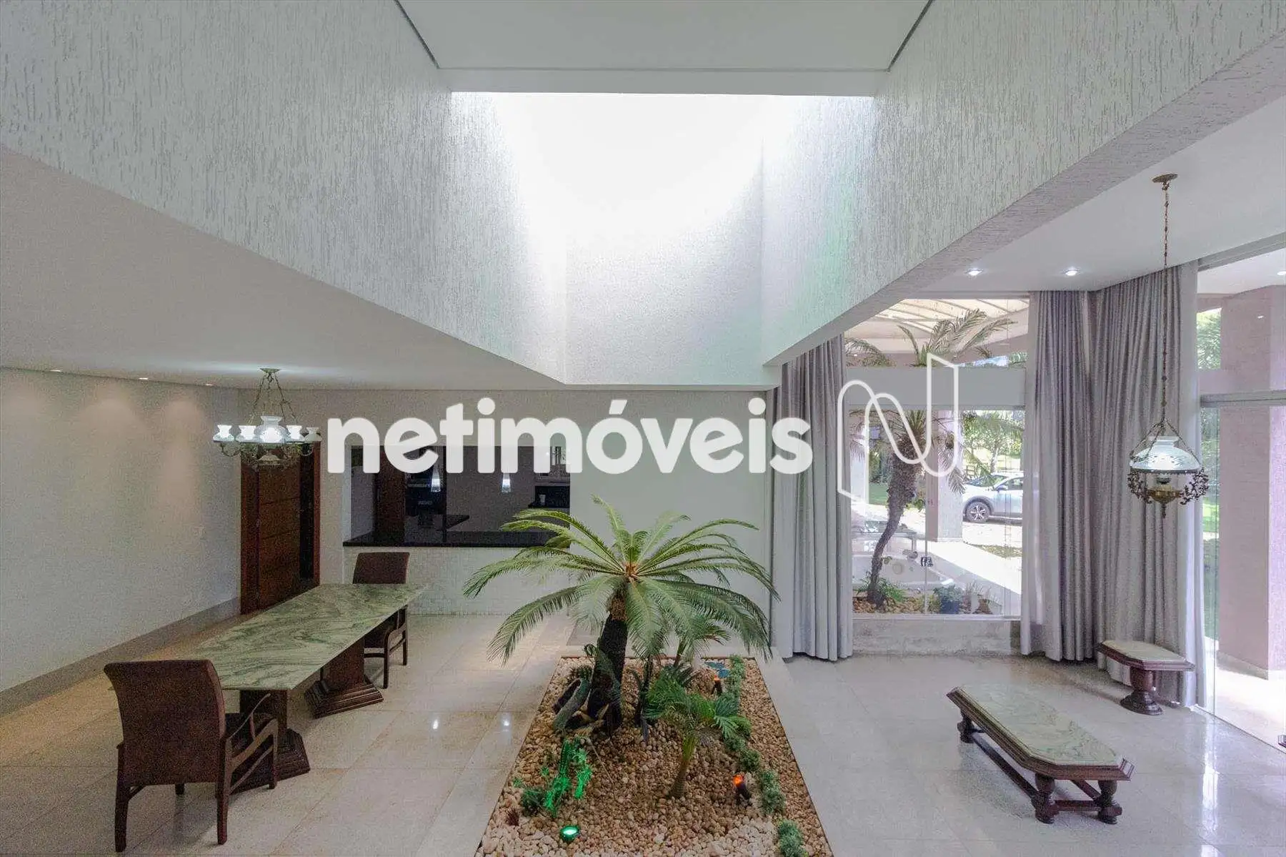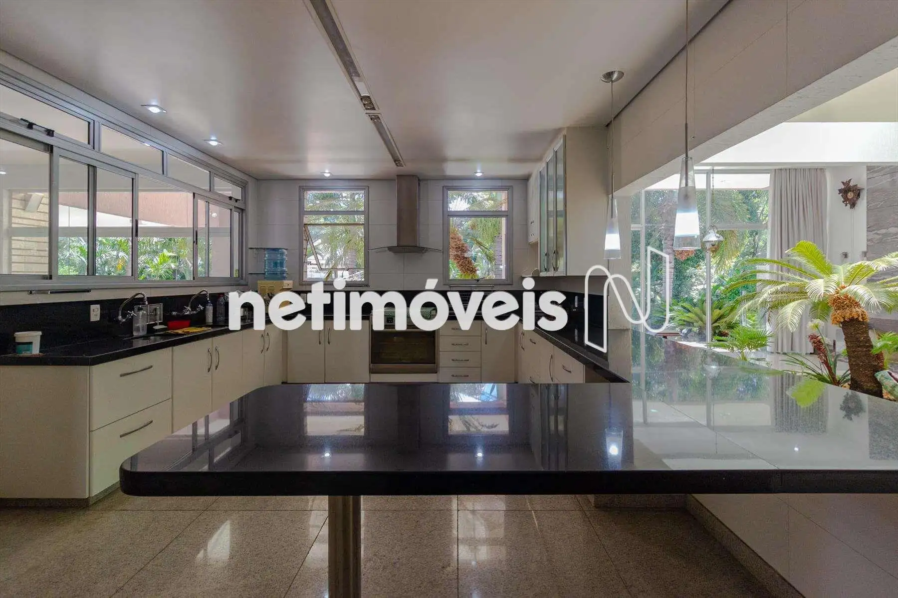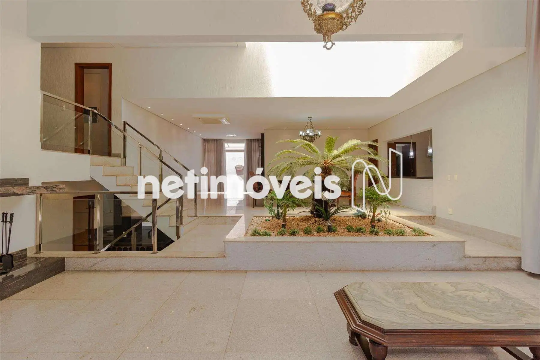 Área construída 607 m², acabamento de alto padrão, ar condicionado na sala e nos quartos.