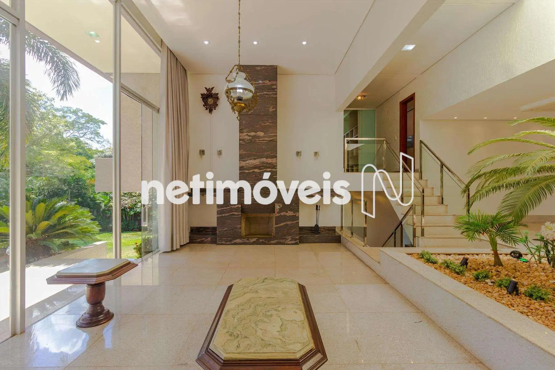 - Ampla sala com lavabo para 03 ambientes TV, jantar e estar com jardim de inverno e lareira.