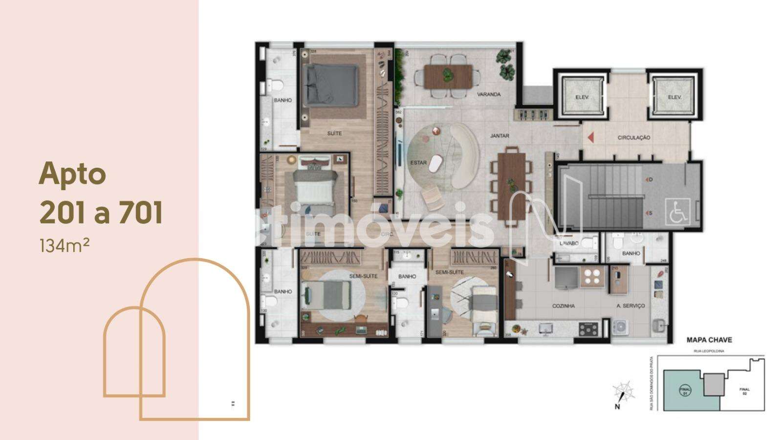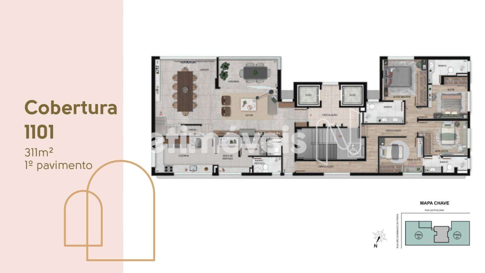 As plantas possuem varandas amplas, com cerca de 10m² e vista livre para a Serra do Curral. Plantas personalizáveis e acabamento de alto padrão