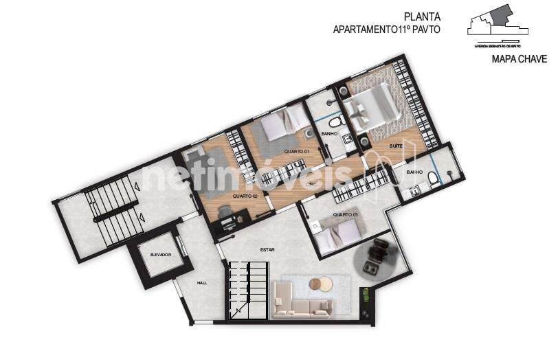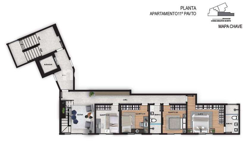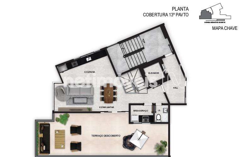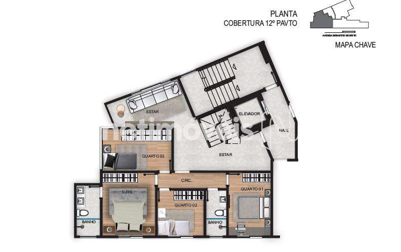 Apartamento Cobertura com 170m², com elevador chegando direto ao segundo pavimento da cobertura, com alto padrão de acabamento composto com: