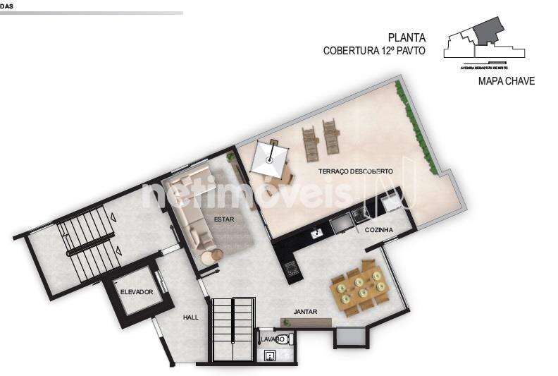 Apartamento Cobertura com 170m², com elevador chegando direto ao segundo pavimento da cobertura, com alto padrão de acabamento composto com: