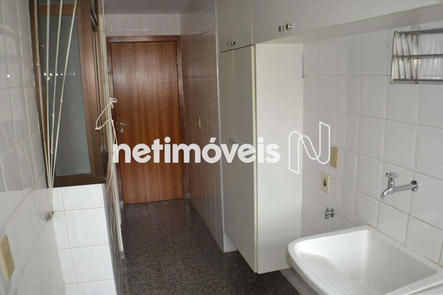 Área de serviço fechada com armários.