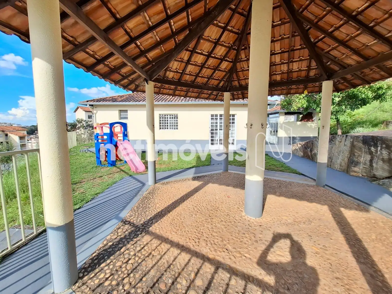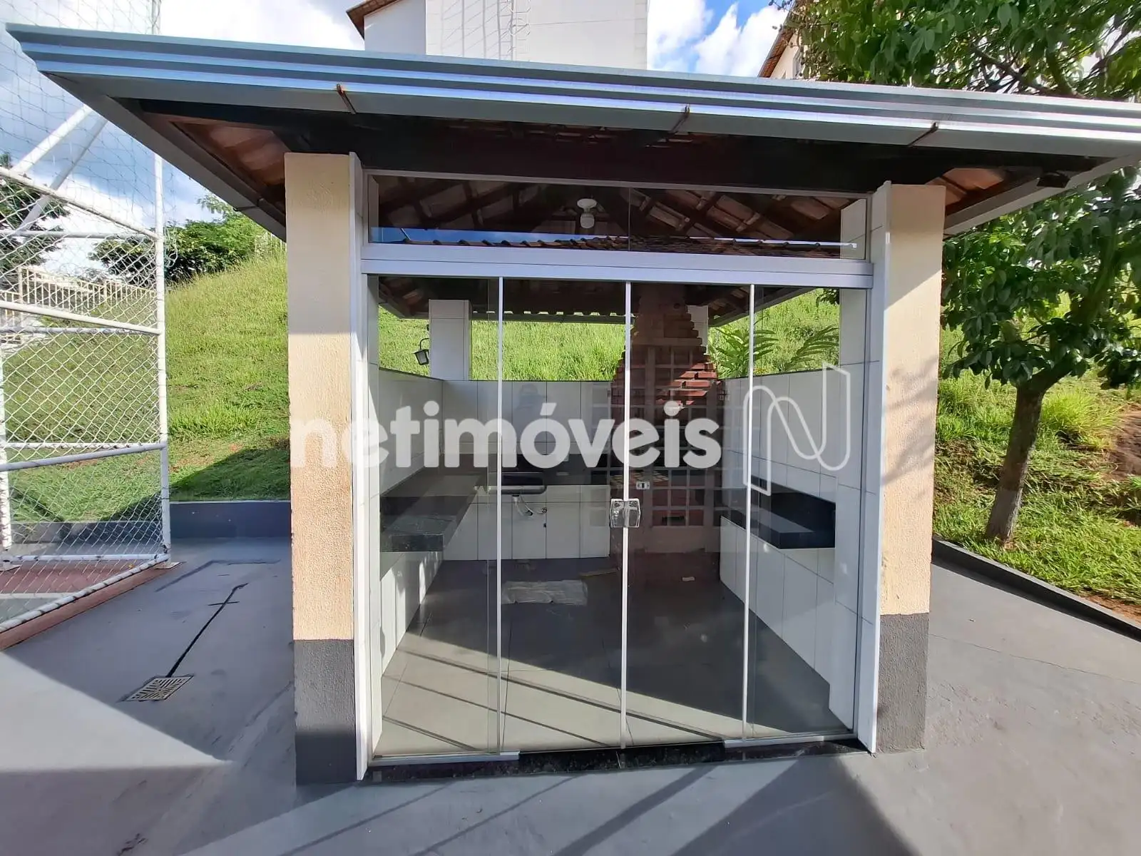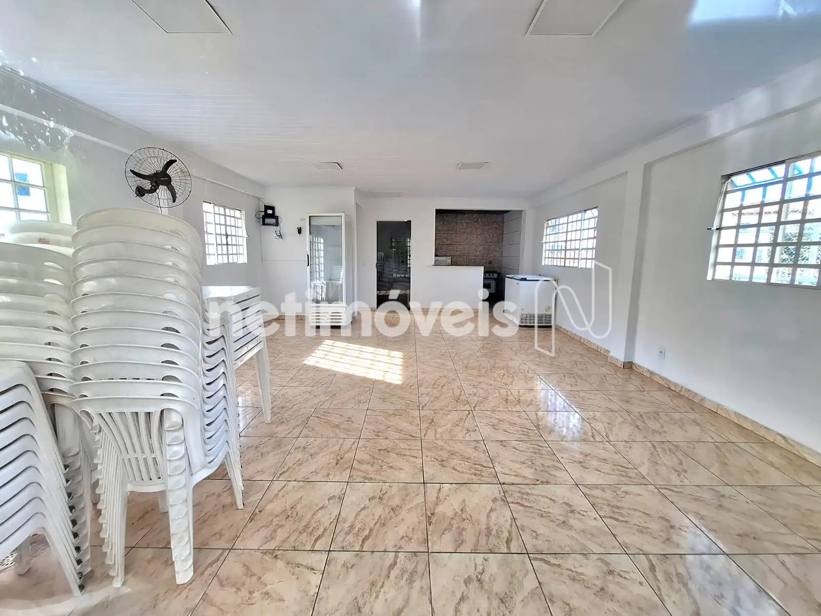 - Salão de festas fechado com freezer, mesas, cadeiras e churrasqueira;