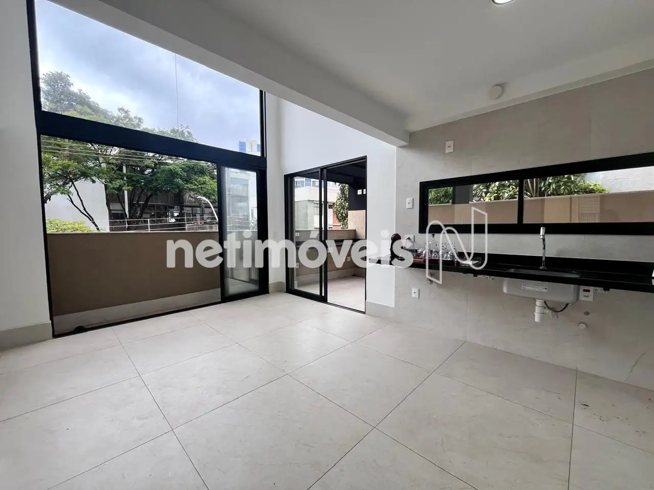 Apartamento de área privativa, com amplo espaço aberto com pergolado, sala para 02 ambientes, cozinha integrada, área de serviço, lavabo;