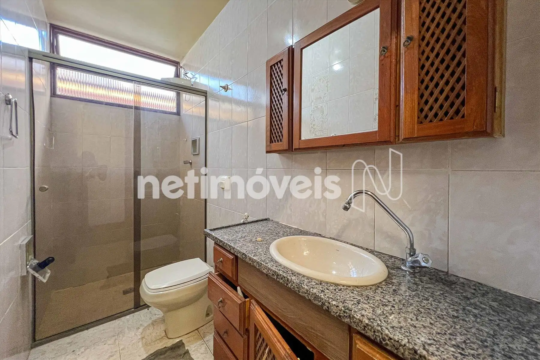 - 02 banhos sendo 01 social com bancada em granito, box vidro temperado e armários, 01 suíte com bancada em granito, box vidro temperado e armários;