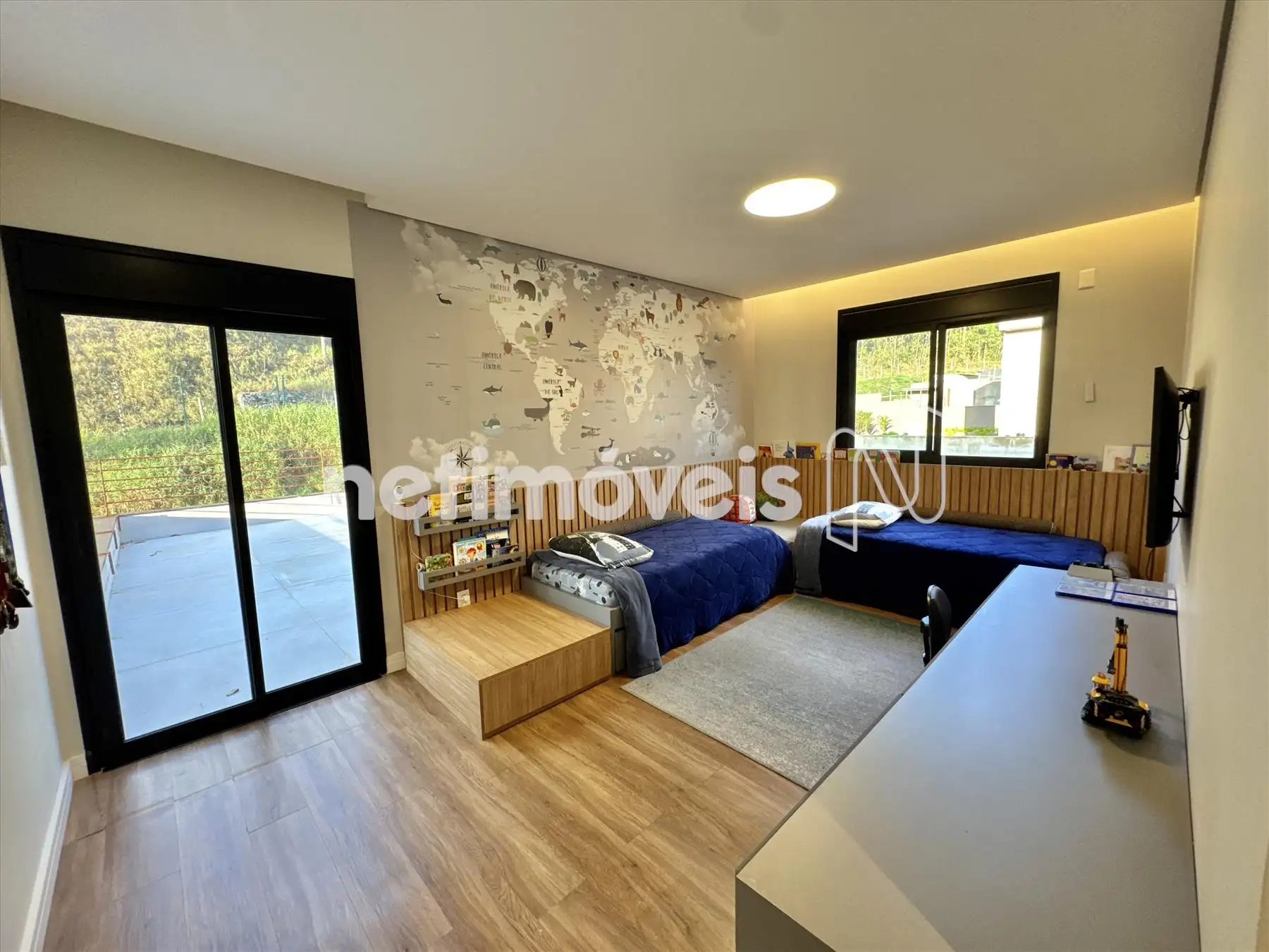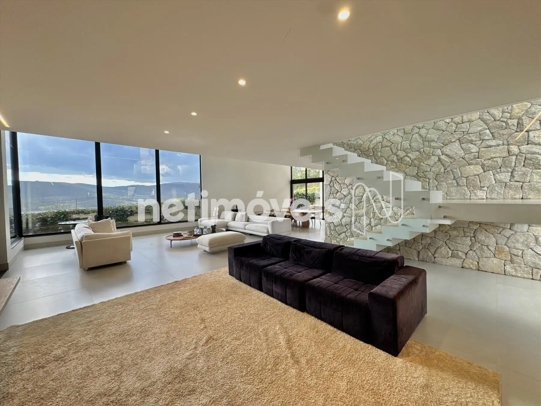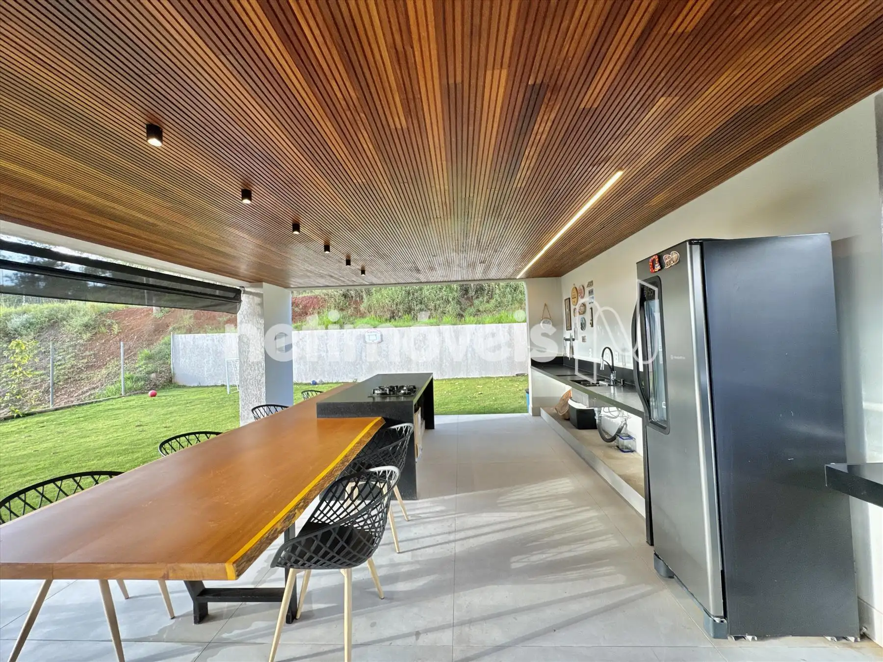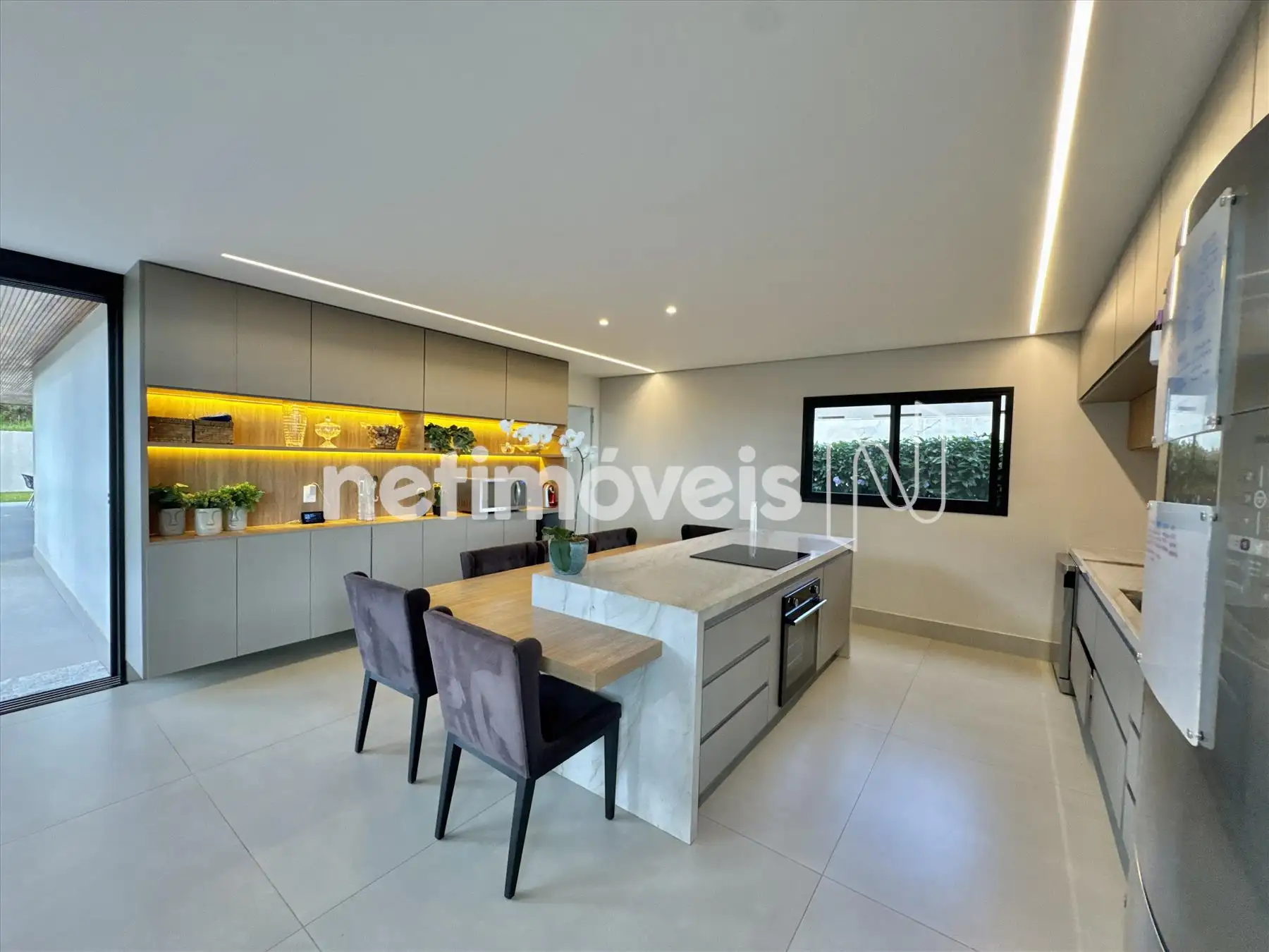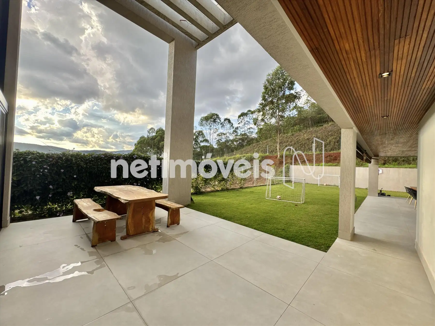 A casa possui amplas janelas nas salas e na suíte principal para propiciar uma vista deslumbrante e indevassável para a Lagoa dos Ingleses e Serra da Moeda.