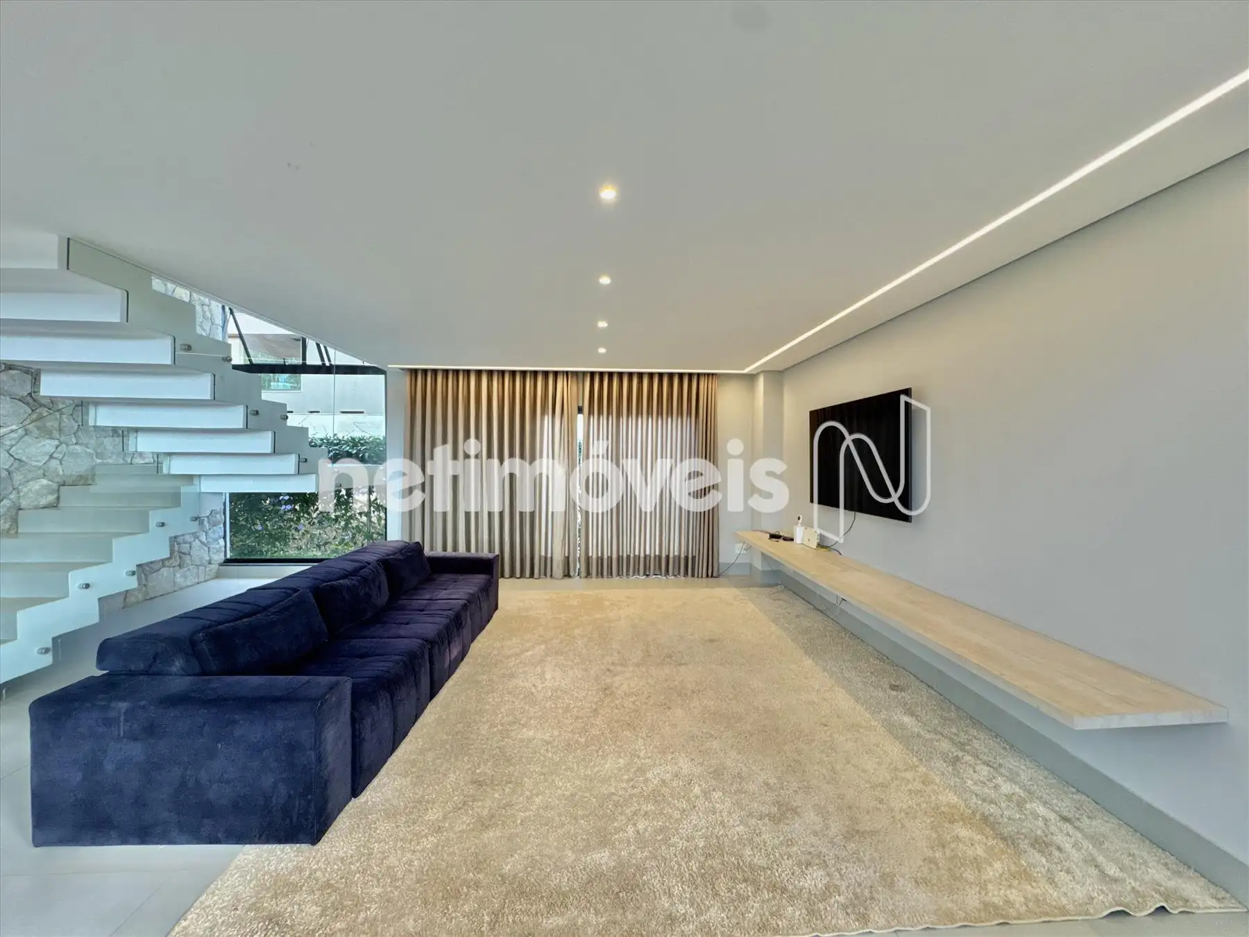 Suntuosa casa de 507m com 2 pavimentos com amplo terreno de 790 metros. Salas de TV, Estar e Jantar integradas à cozinha de estilo americano. Cozinha com bancadas em quartzito, armários planejados e com fogão de indução. Ampla área de serviço (lavanderia) e DCE. Área gourmet com belíssimo teto em lambri de madeira, bancadas em granito São Gabriel escovado e lavabo externo. A casa conta ainda com um extenso gramado ao fundo.