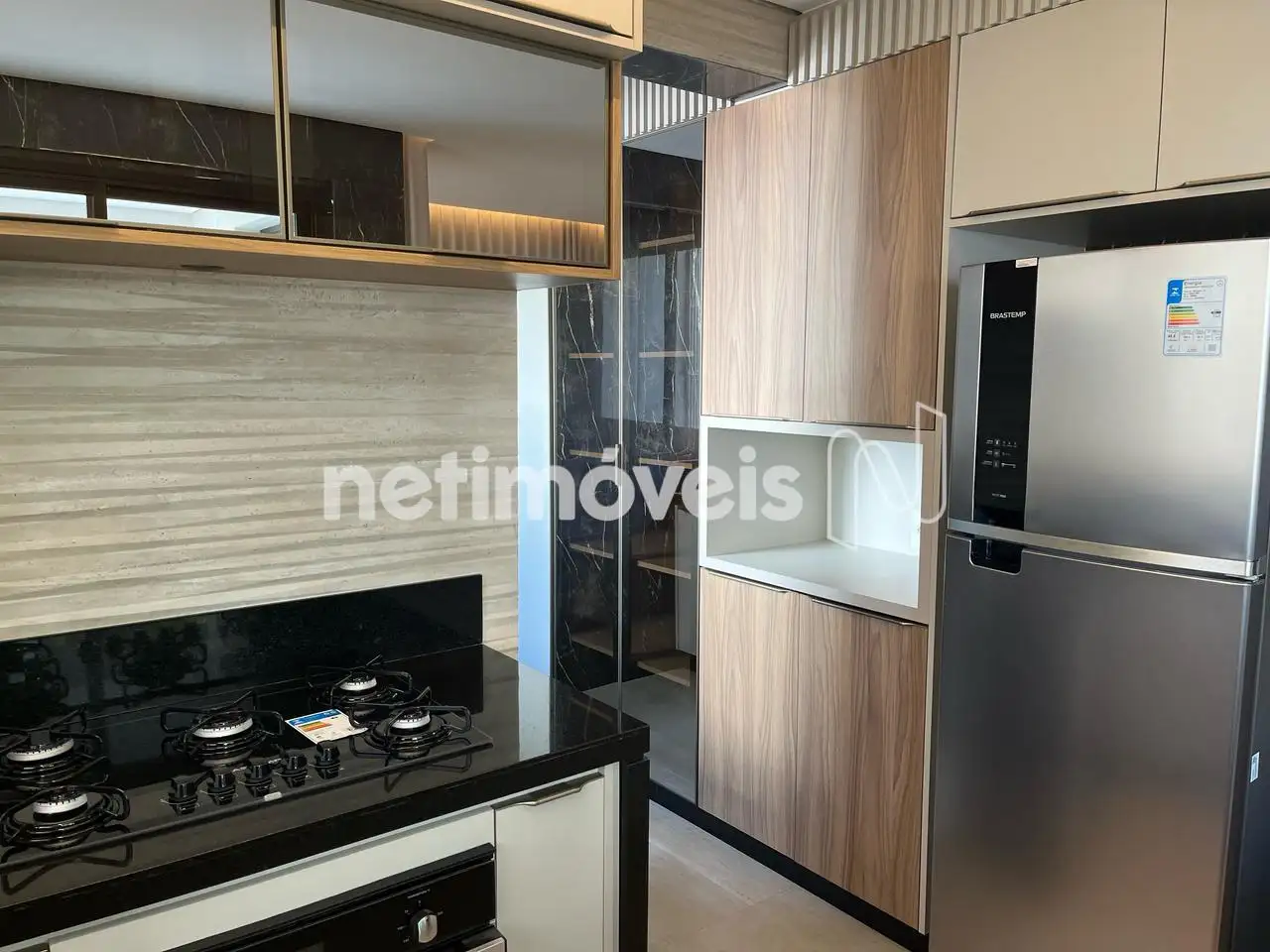 - Cozinha com bancadas em granito, revestidas em porcelanato;