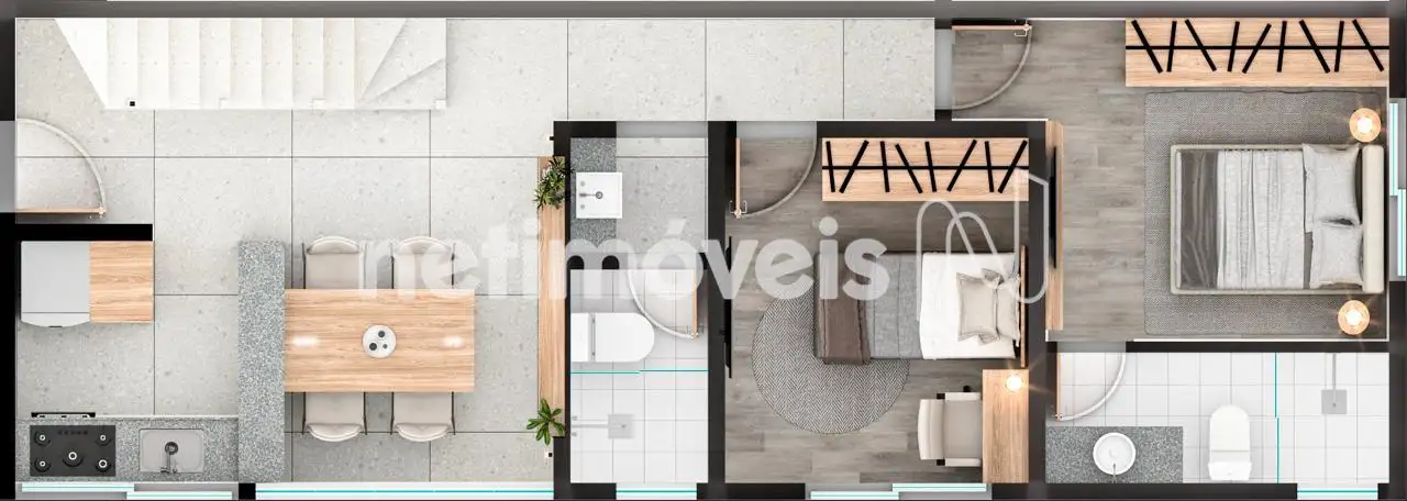 Apartamentos “tipo”. compostos por 02 quartos, sendo uma suíte e outro quarto reversível a suíte (como opção), sala de estar/jantar (lavabo opcional).
