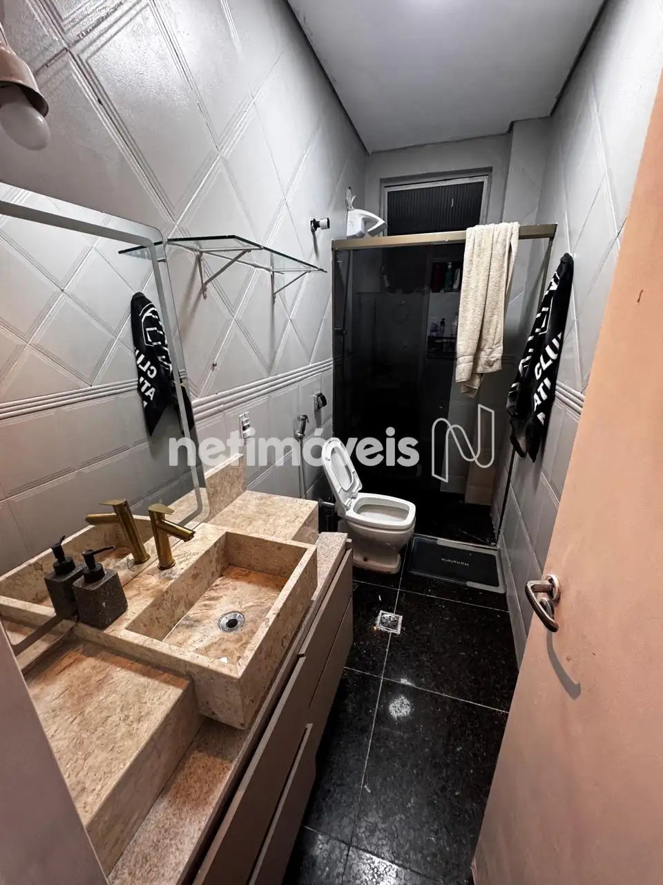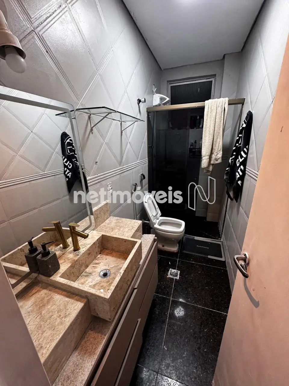- Banhos social e suíte reformados com as mesmas características: Piso e bancadas em granito, box blindex, armários sob bancadas.