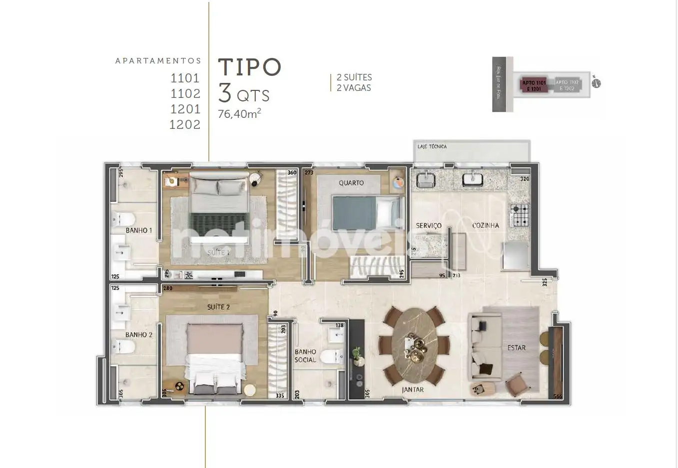 Apartamento 3Q - 2 suítes, grande terraço - SPA com ducha - 2 vagas - 135,90m² (76,40m² + 59,50m²