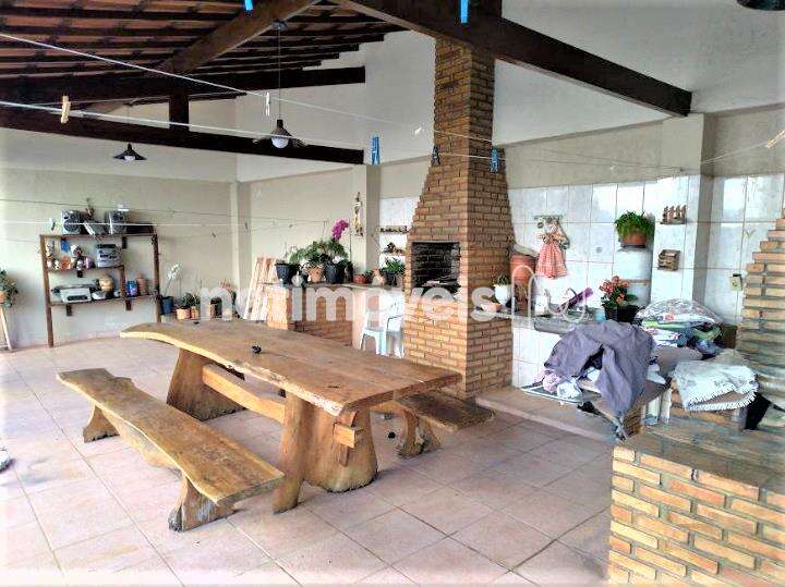 - Área gourmet com telhado colonial, churrasqueira, fogão e forno a lenha.