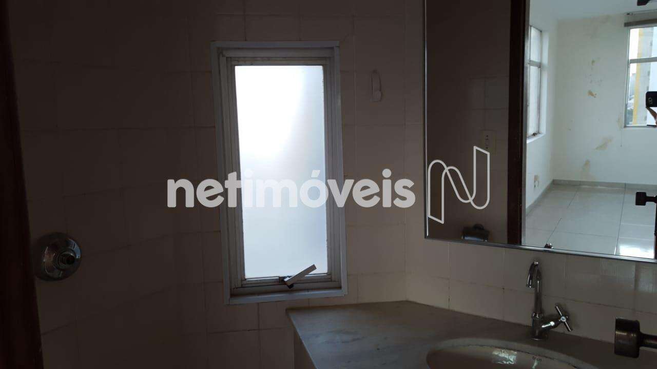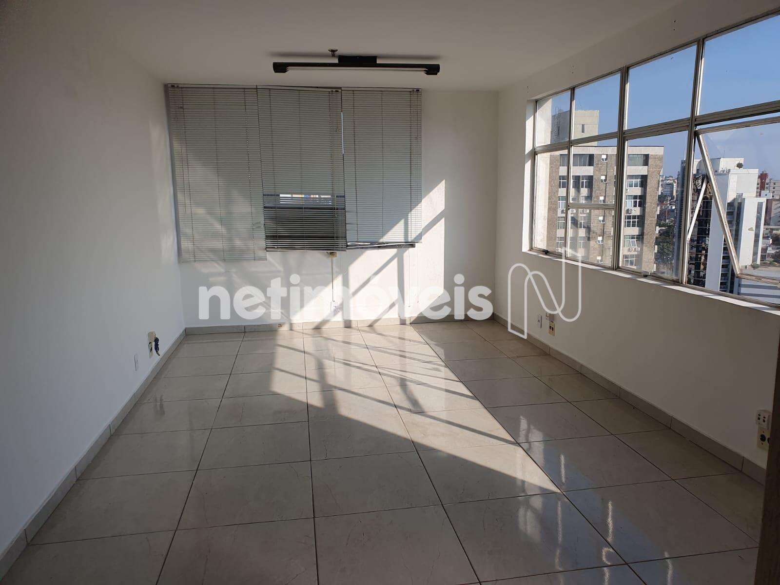 Sala em andar alto, clara, arejada e silenciosa, com área interna de 26,56m, piso em porcelanato; 01 banho com bancada em granito, armário e espelho.