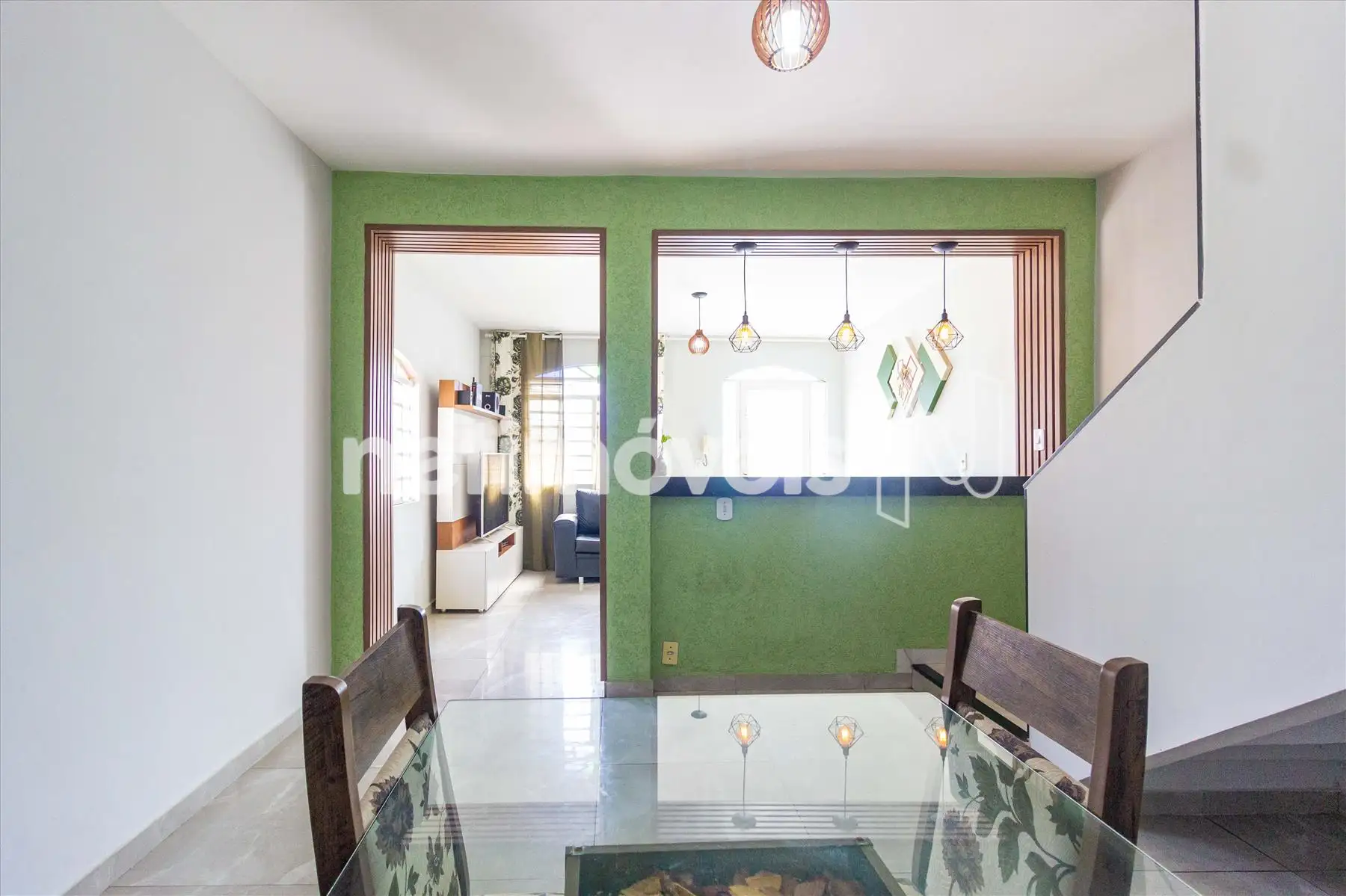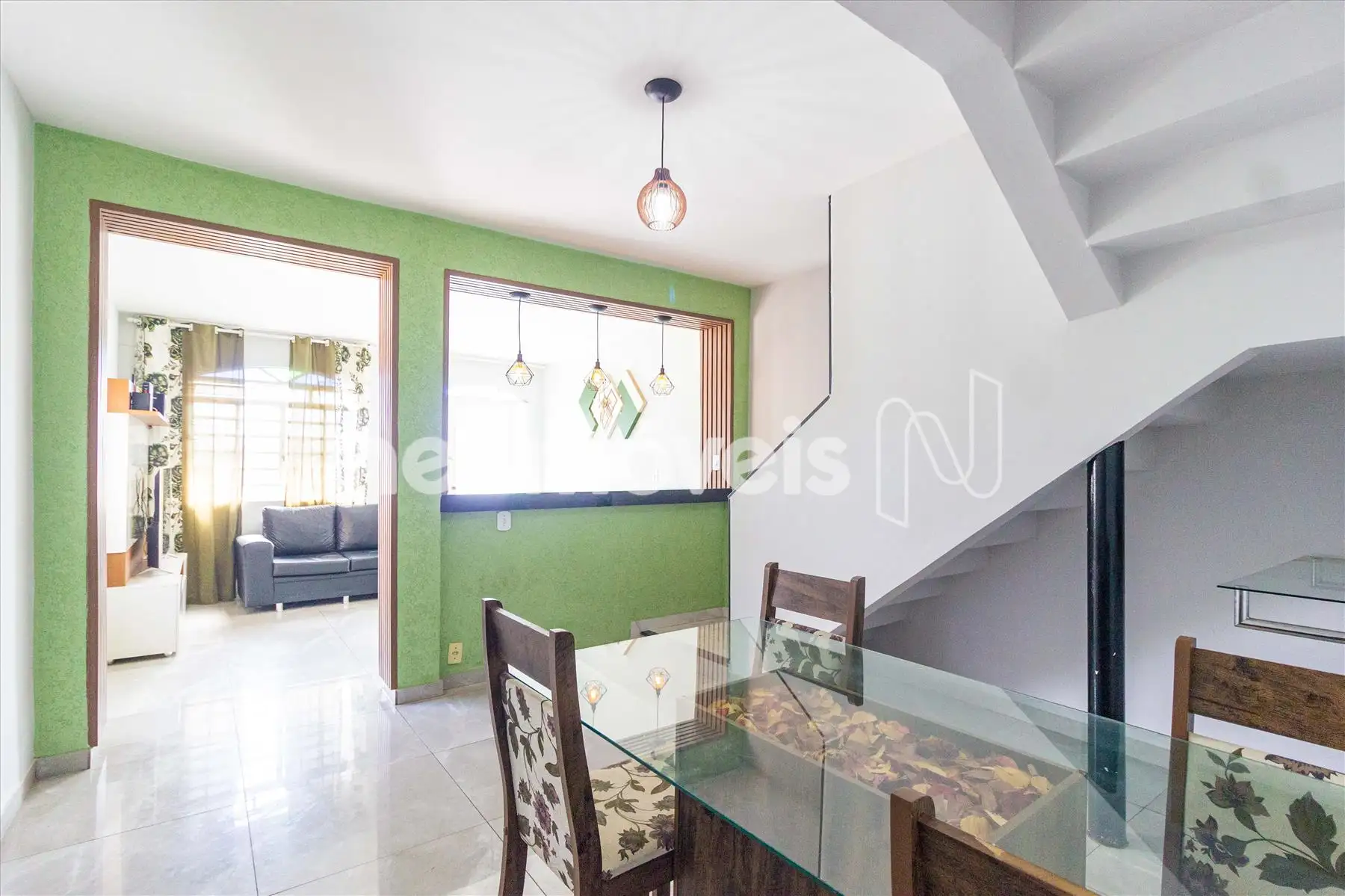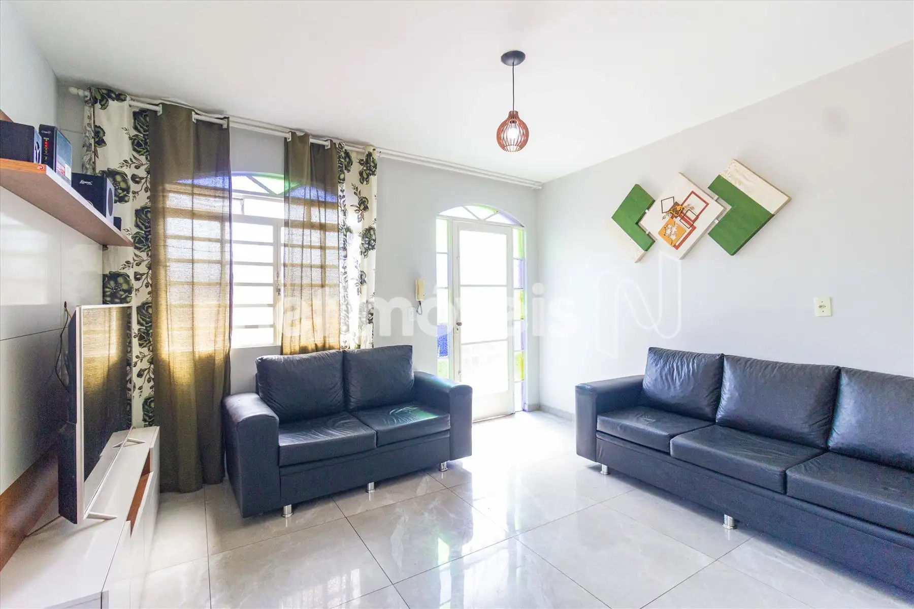 - Sala para 2 ambientes em piso de porcelanato, proporcionando um espaço versátil e acolhedor;