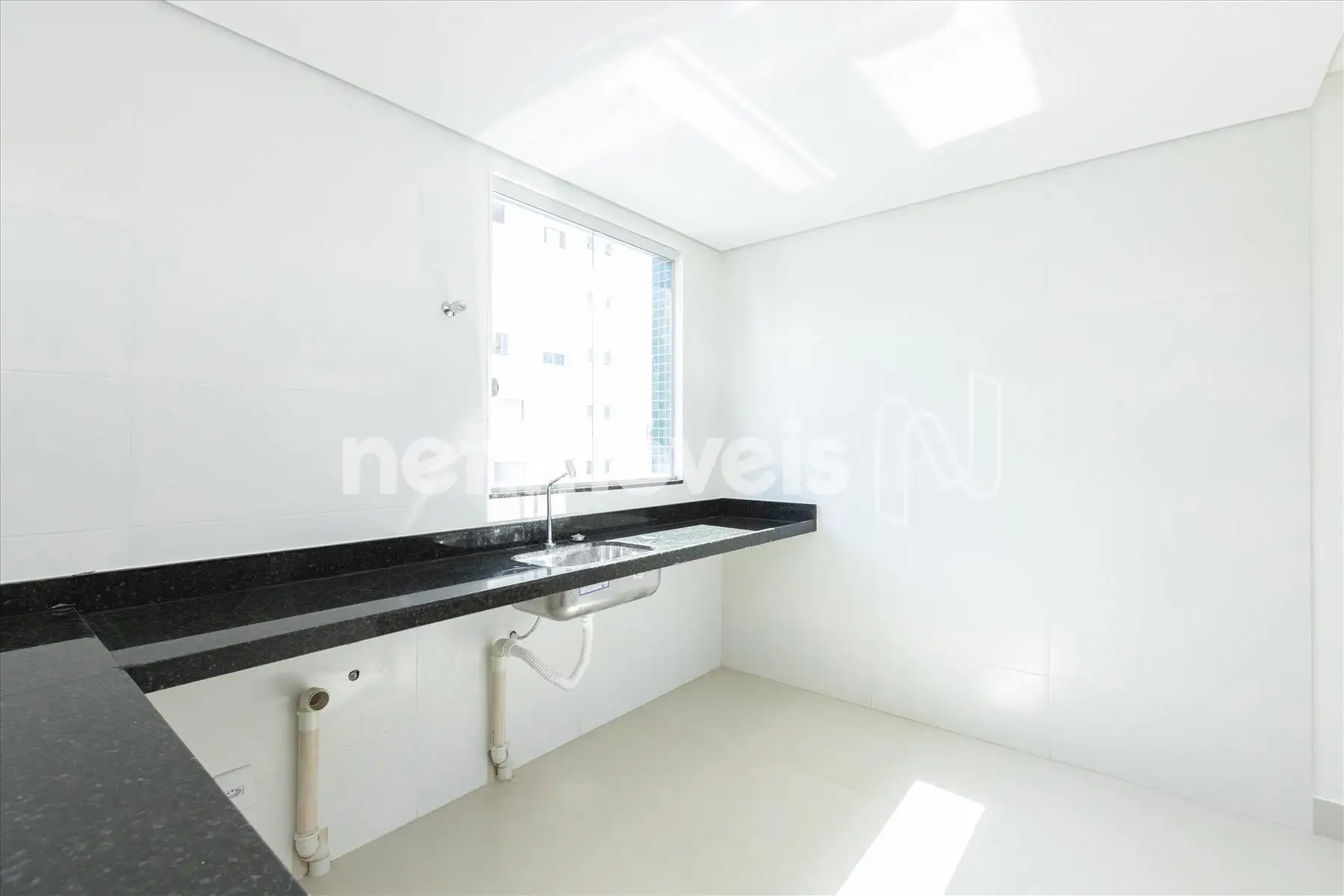 Cozinha americana com bancadas em granito.
