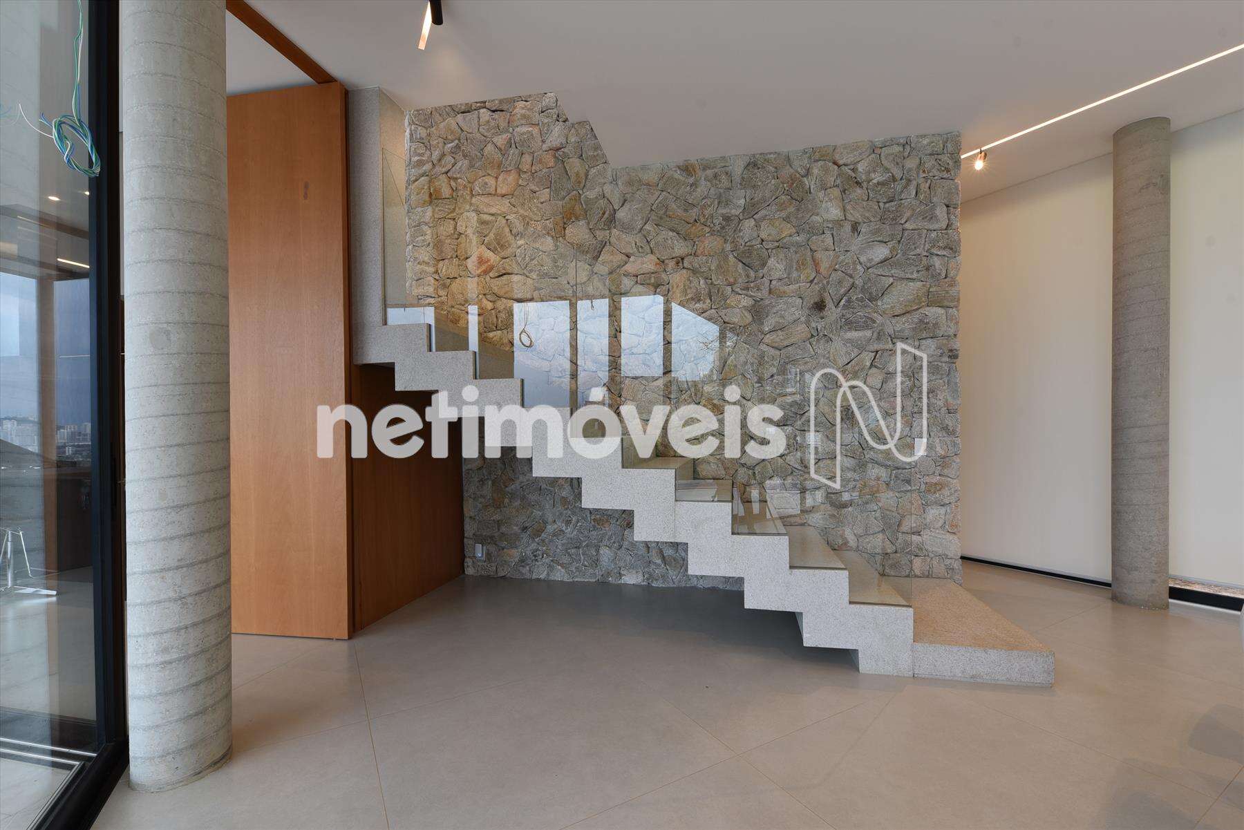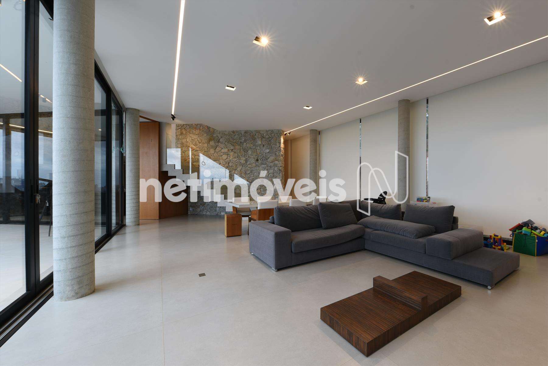 Nível inferior: - Sala ampla para 2 ambientes com piso em granito, pé direito alto. Lareira a lenha com exaustão