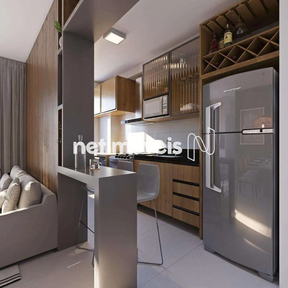 - Cozinha e área de serviço integrada;