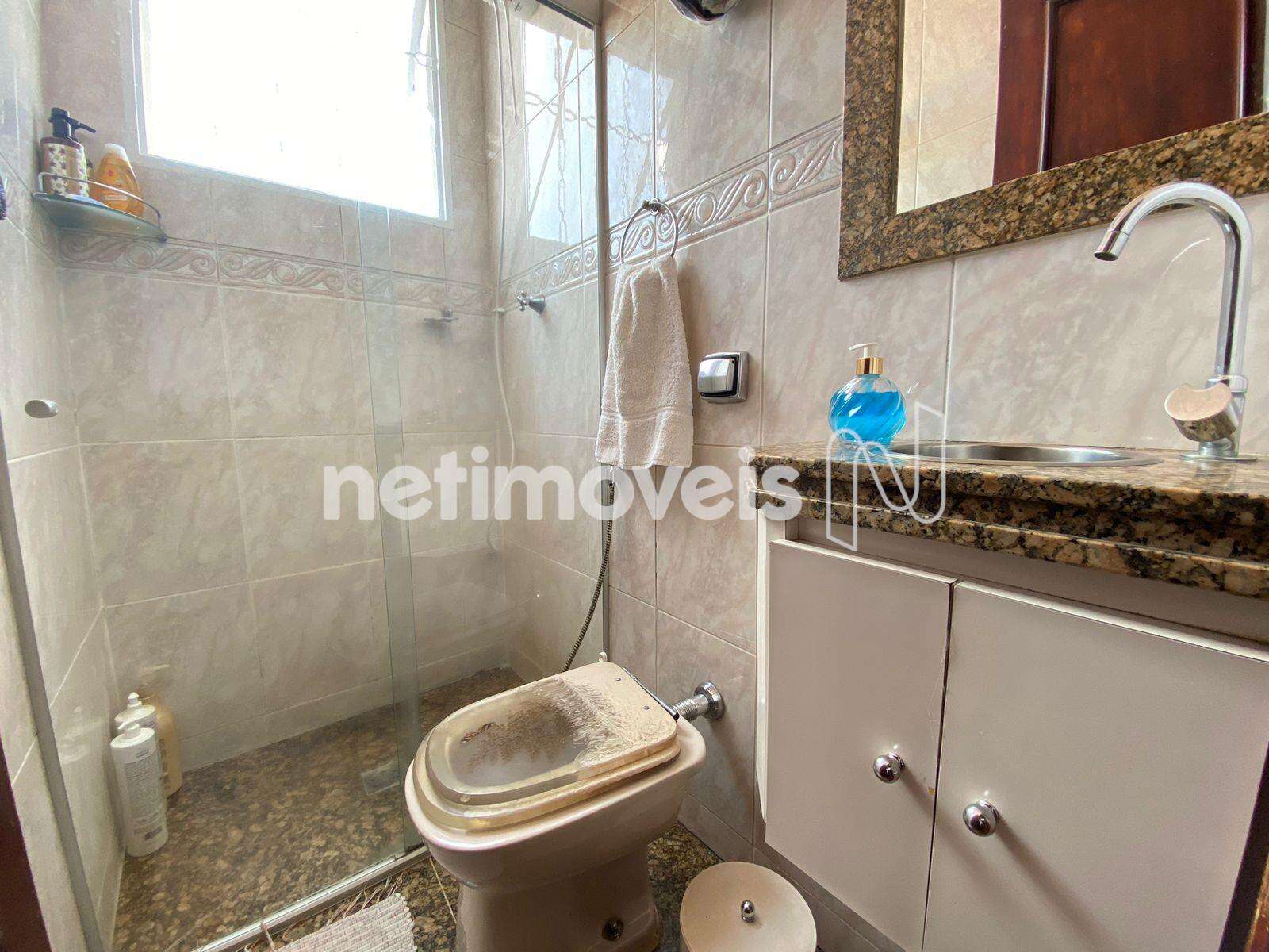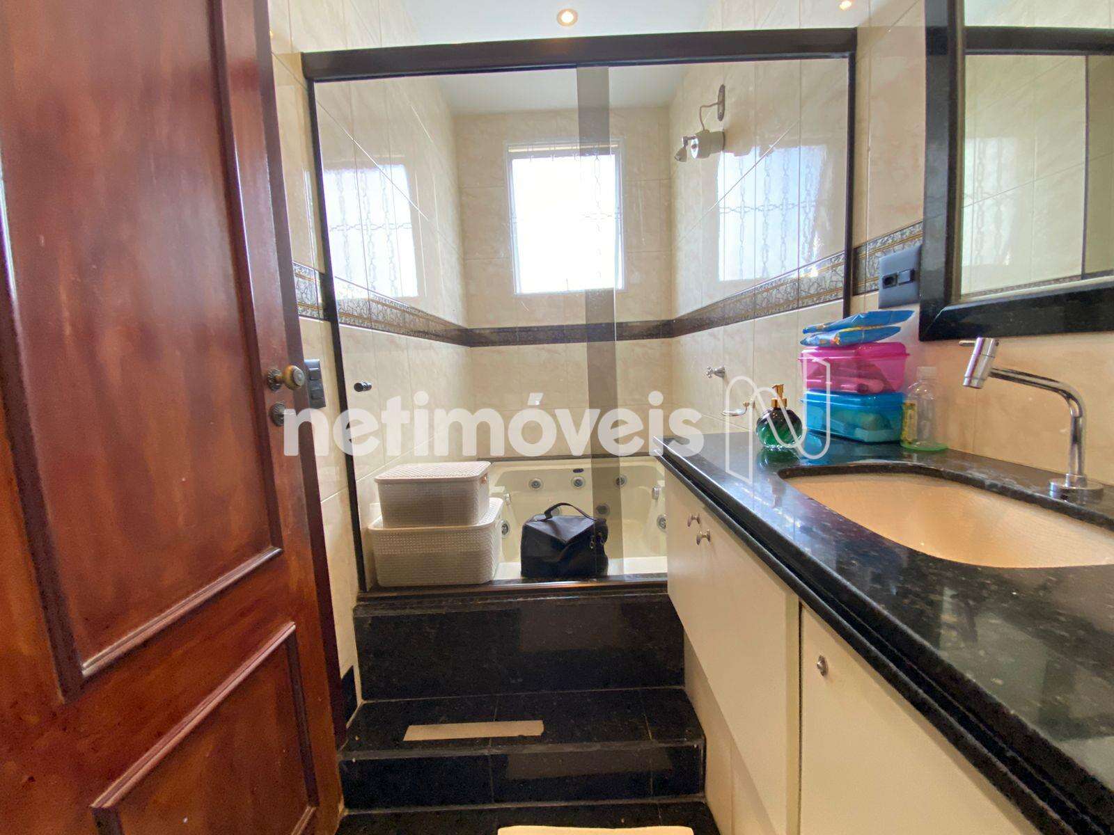 Banho social com armários e box em vidro temperado;