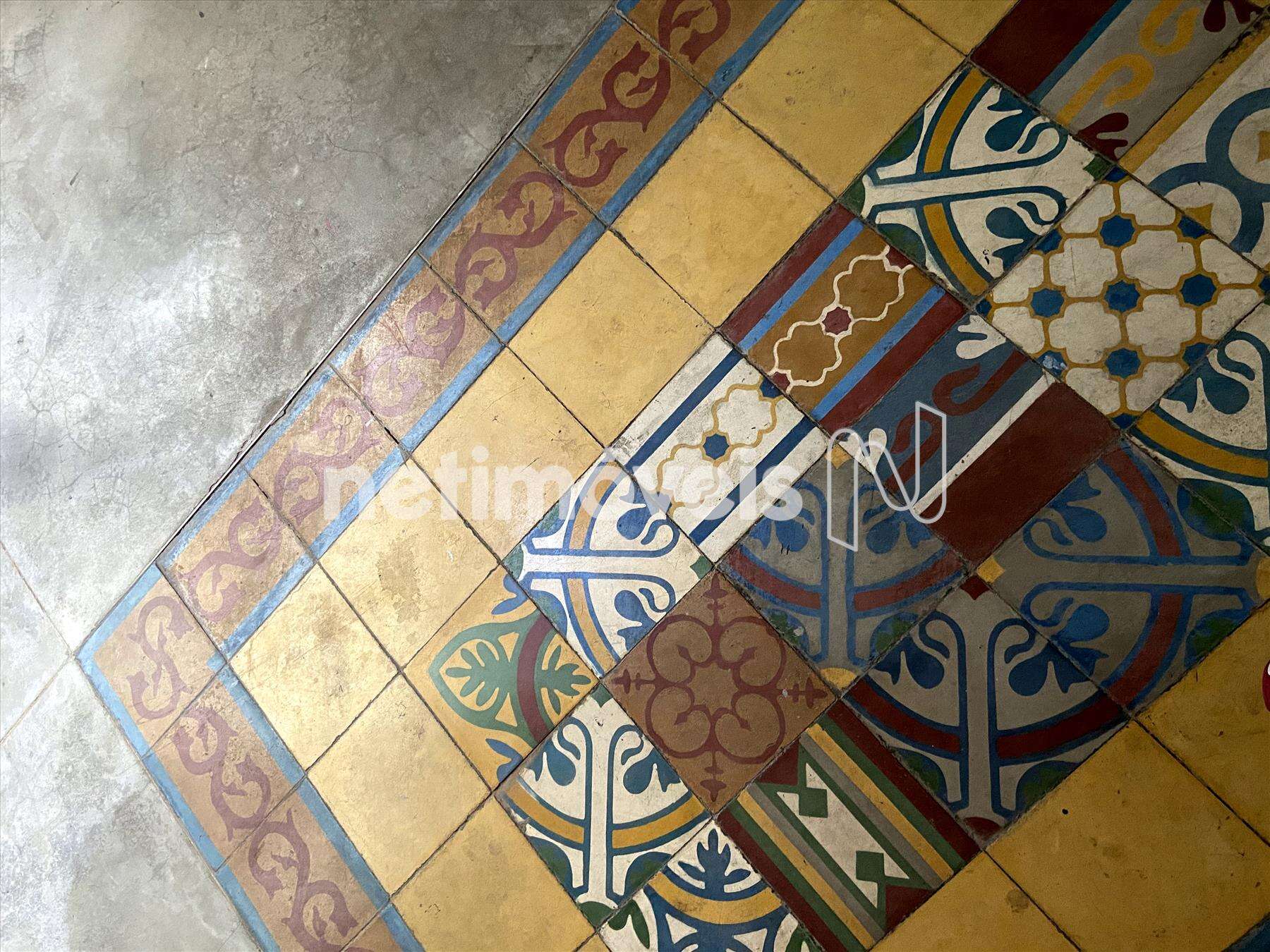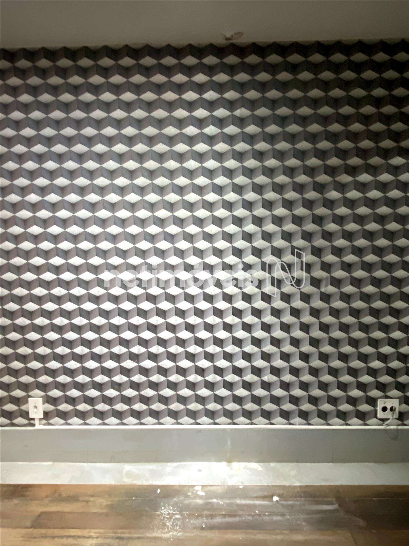 Loja com parte do piso cimento queimado e cerâmica, parte da parede em mosaico.